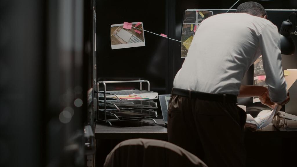 Arrangieren Sie Bildserien in wiederkehrenden Intervallen – groß, klein, Detail, Weite. Dieses visuelle Metrum führt das Auge und macht Zusammenhänge spürbar. Teilen Sie Ihre Sequenz‑Skizzen mit uns und inspirieren Sie andere Kuratorinnen.